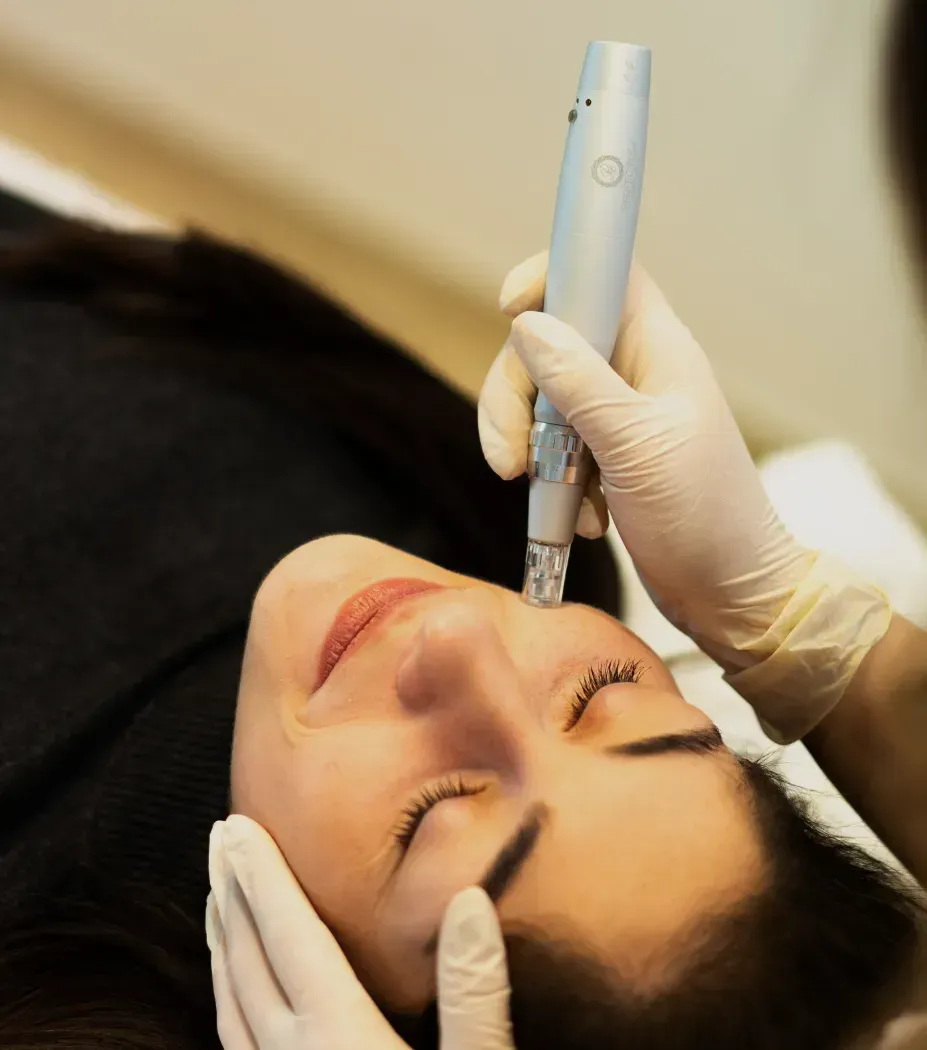 Microneedling ist eine nicht-invasive Behandlungsmethode, die auf der Anwendung winziger Nadeln auf der Haut beruht. Die Behandlung besteht darin, dass die Nadeln in die oberste Schicht der Haut eindringen, und diese minimal verletzen. Diese Mikroverletzungen lösen eine natürliche Heilungsreaktion der Haut aus, die die Regeneration der Haut fördert und das Kollagenwachstum anregt.